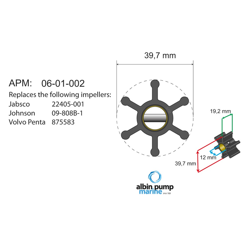 طقم مكره بديل ممتاز يحل محل الموديلات الشائعة التالية: JMP 7000-01، وJabsco 22405-001، وJohnson Pump 09-808B-1، وVolvo Penta 875583.